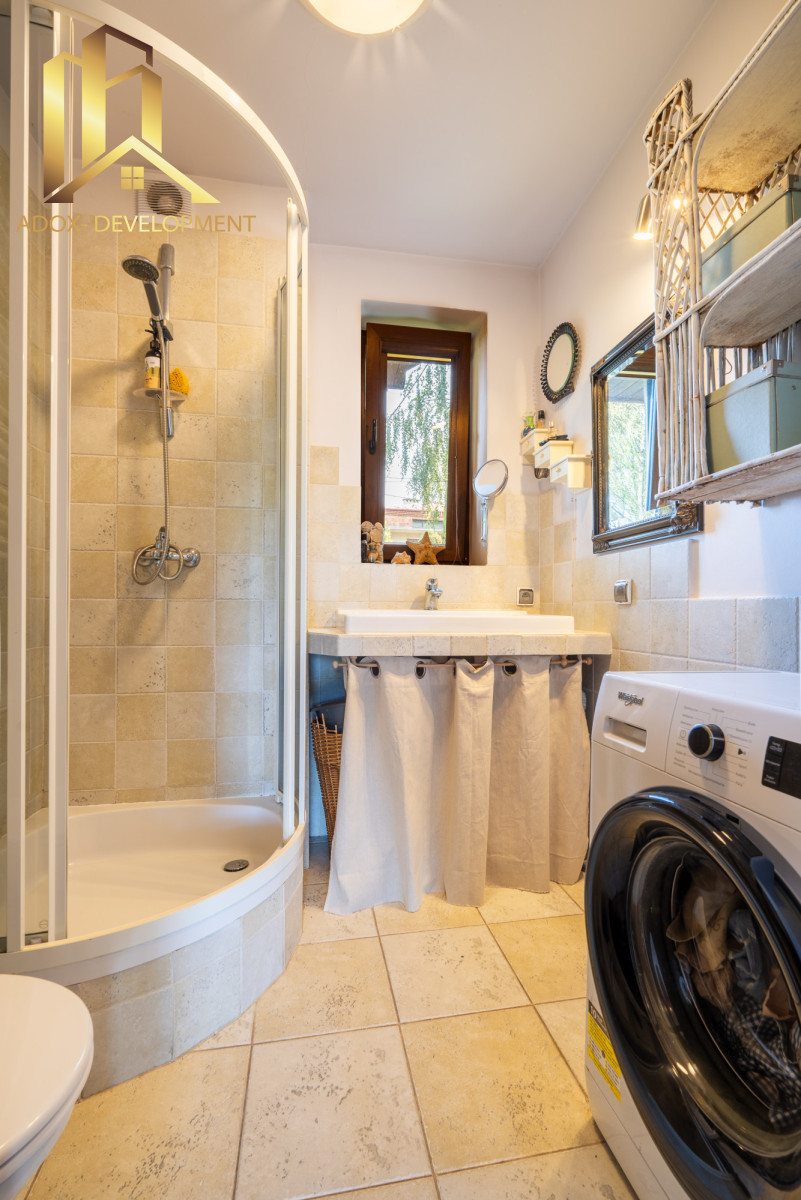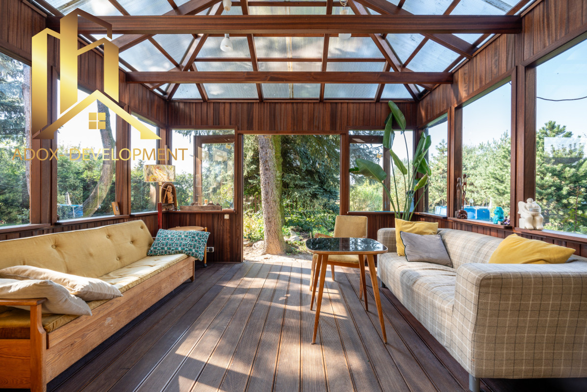 Na działce o powierzchni 2359 m² stoi dom o powierzchni 196 m², pełen naturalnego światła i wewnętrznej harmonii. Obecni właściciele stworzyli tu przestrzeń, która łączy ducha twórczego z praktycznym komfortem. Ogromny salon z kominkiem i ogrodem zimowym, piec kaflowy w kuchni, kwietna łąka za oknami - wszystko ma tu swój rytm.