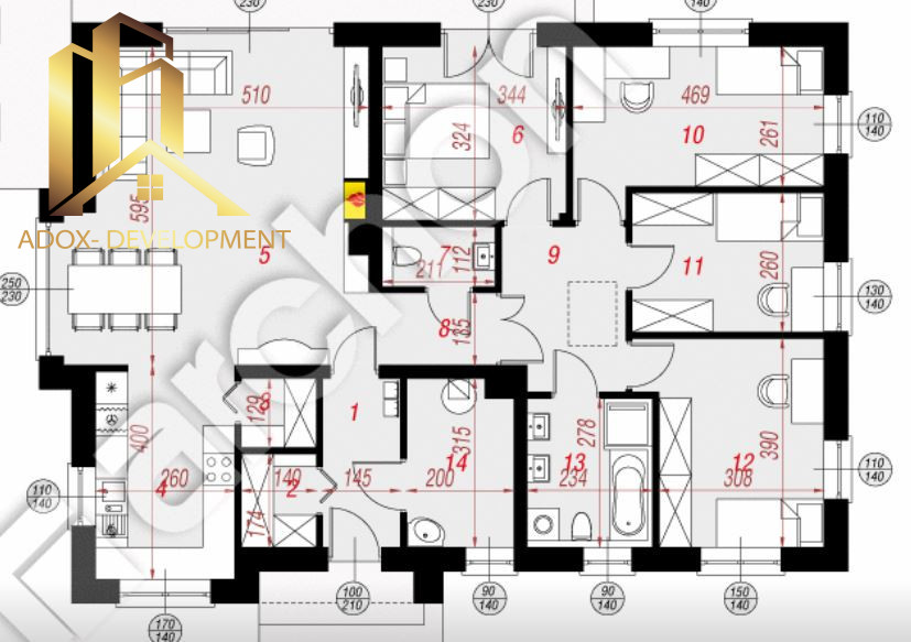 - 5 pokoi - w tym przestronny salon z jadalnią, kuchnia, 3 ustawne sypialnie, dodatkowy pokój/gabinet,