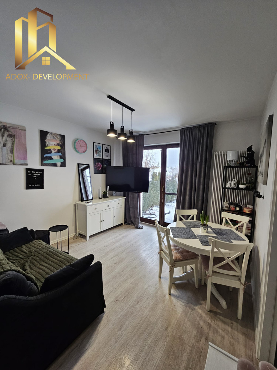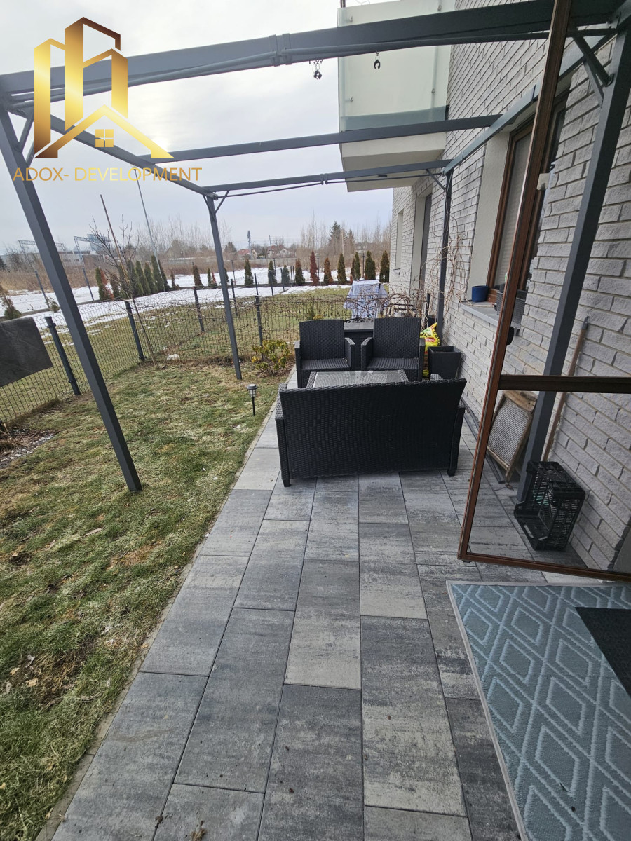 Cisza, która otacza to mieszkanie, czyni je idealnym miejscem do odpoczynku po intensywnym dniu. Duże, aluminiowe okna zapewniają doskonałe doświetlenie pomieszczeń, a jednocześnie gwarantują komfort akustyczny, dzięki czemu hałasy z zewnątrz nie będą Cię niepokoić. Z salonu wychodzimy na własny ogródek, gdzie możemy spokojnie się relaksować.