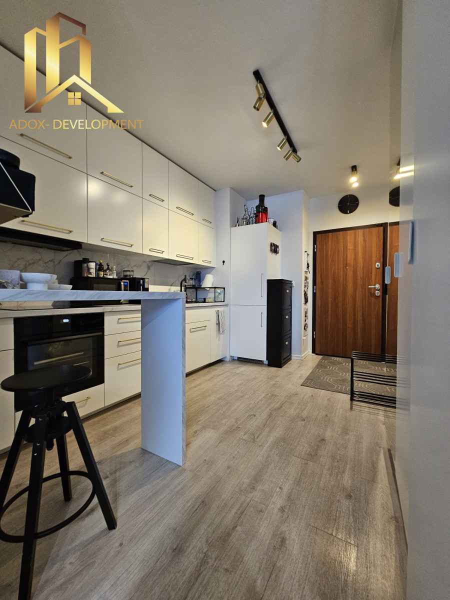 Wchodząc do mieszkania, znajdziemy otwartą kuchnię, która jest doskonale wyposażona w nowoczesne sprzęty, takie jak piekarnik, lodówka, kuchenka oraz zmywarka. Przestronny układ kuchni umożliwia swobodne gotowanie oraz wspólne spędzanie czasu z rodziną i przyjaciółmi.